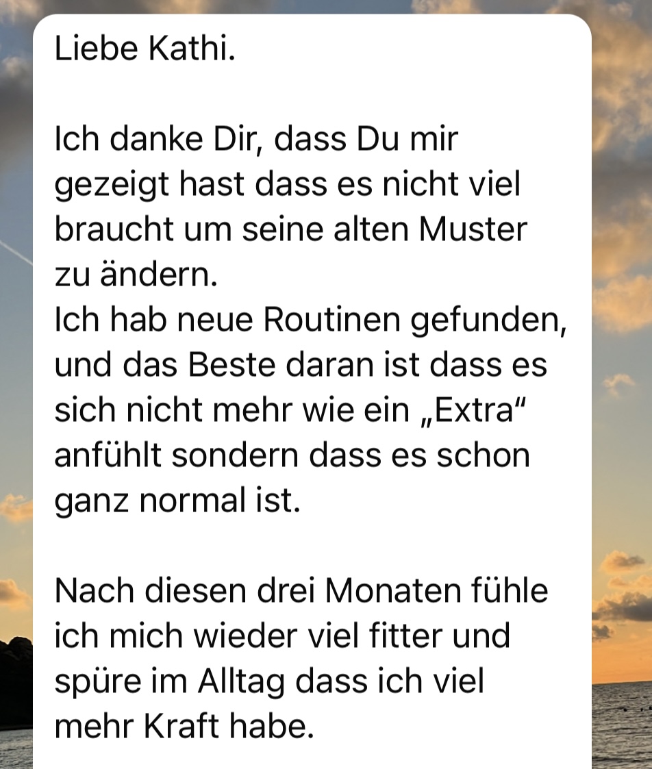 …du merkst, wie deine neu erlernten Gewohnheiten, dein Leben und deinen Alltag positiv prägen? – Dein Alltag wird plötzlich leichter. Du findest Zeit für dich, fühlst dich ausgeglichener und bist mit dir und deinem Körper im Einklang.